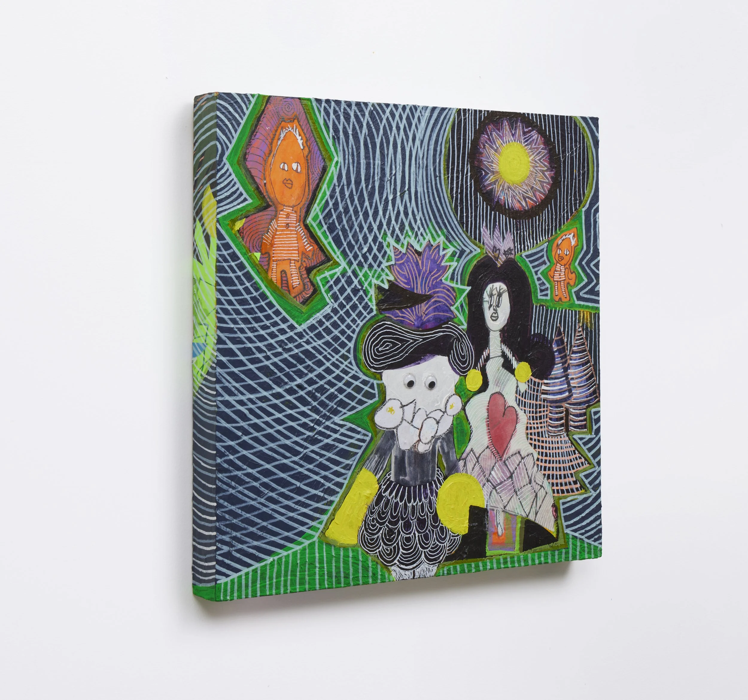 Back Slide 1 Slide 1 (current slide) Nepotism, 2022, collage, epoxy resin, and acrylic, 16 x 16 x 1 inAvailable for sale.